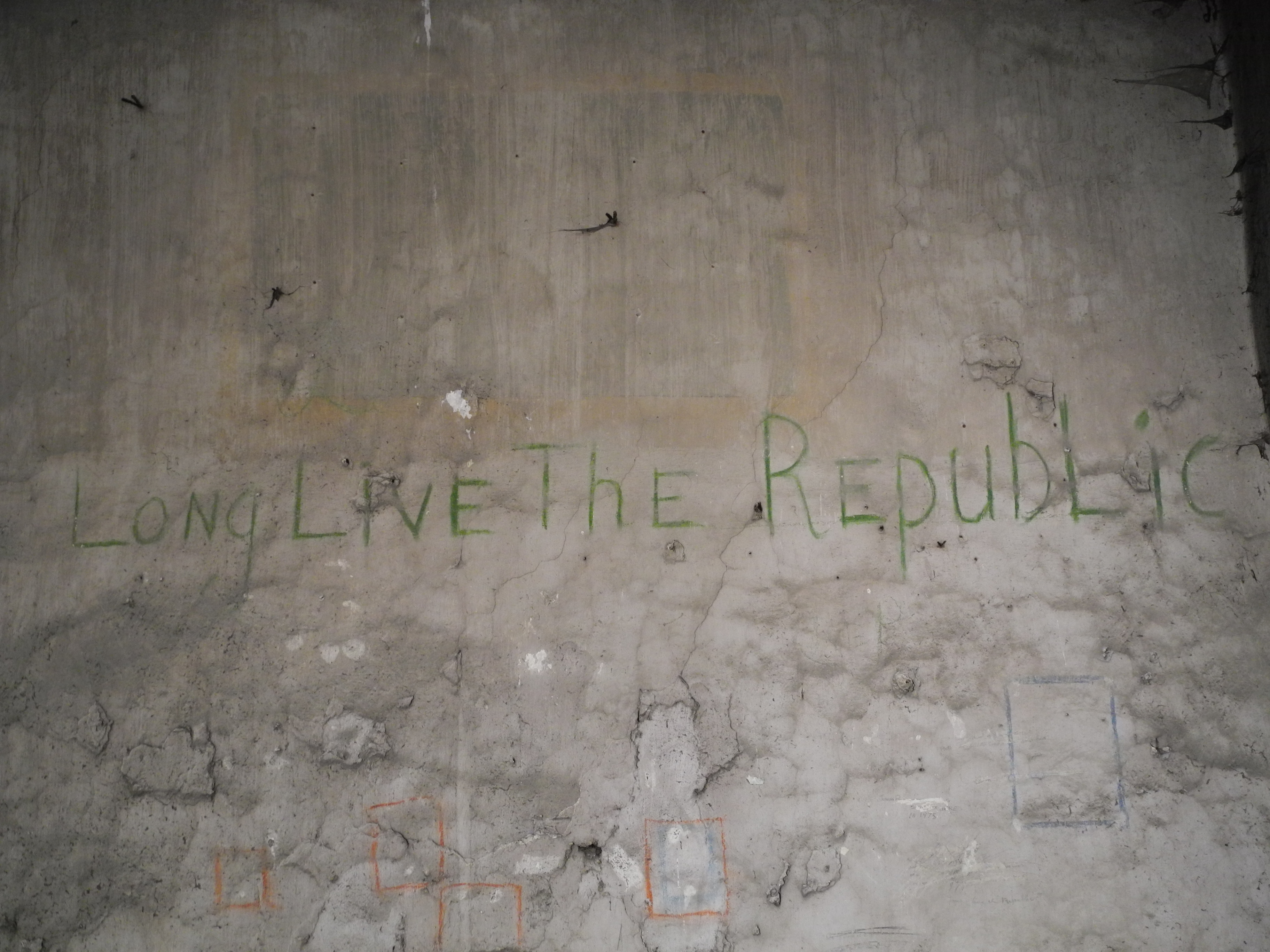 Slogan painted in green over whitewash ‘Long Live the Republic’ located in a cell on Corridor 1 of Top Floor.