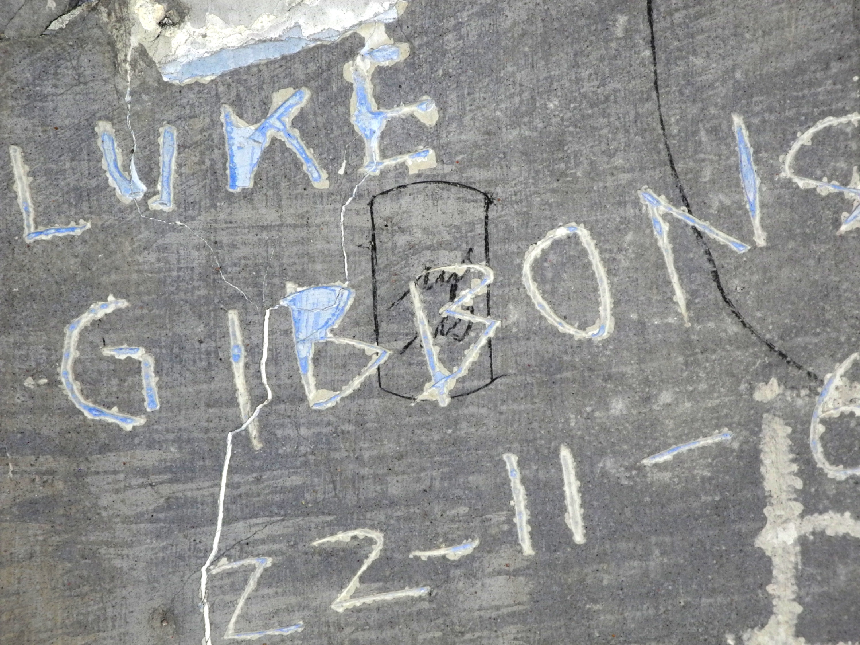 Pencil graffiti (over whitewash but under later engraving) located in ‘Patrick Pearse’s cell on Corridor 1 of the Middle Floor