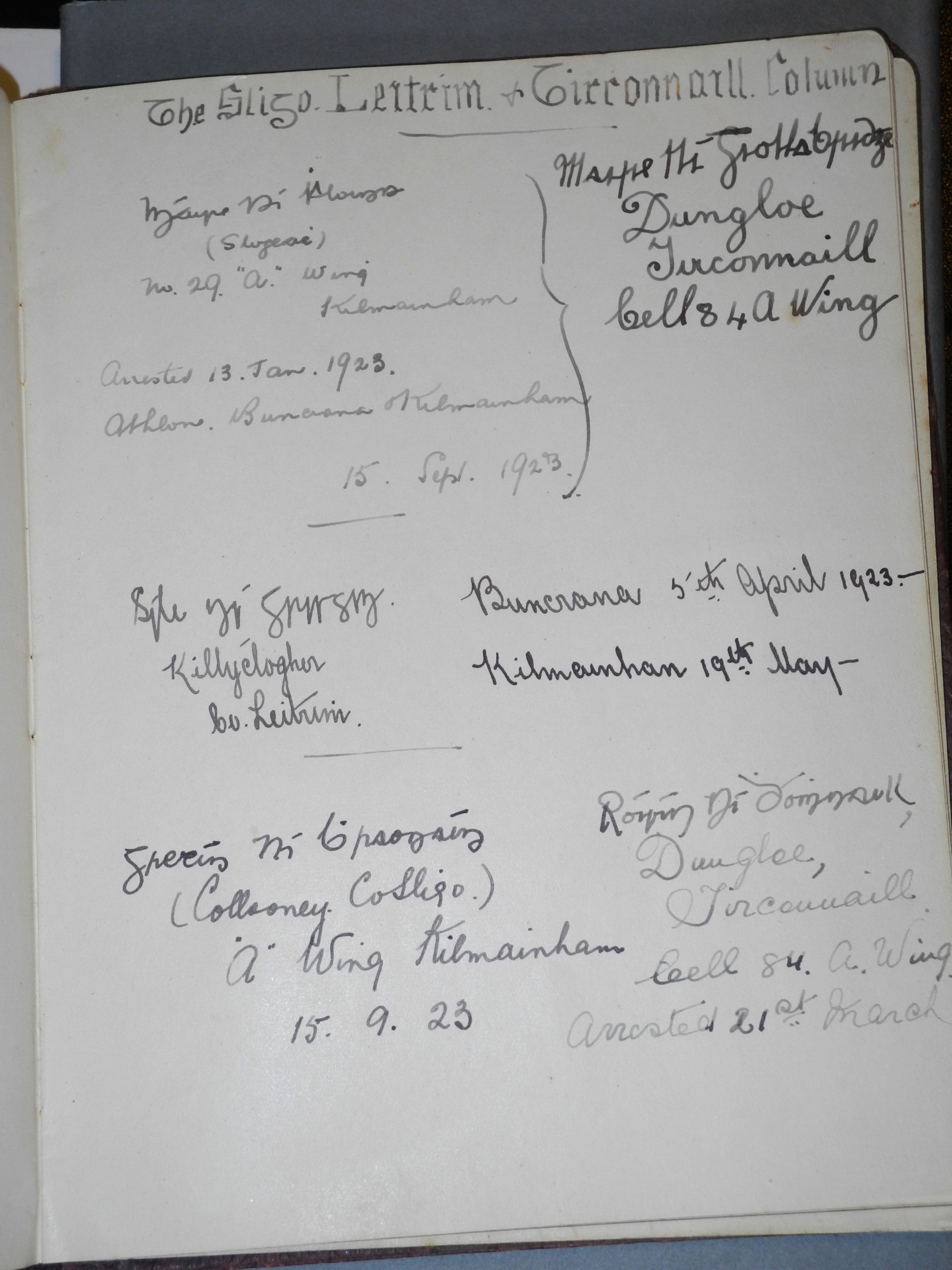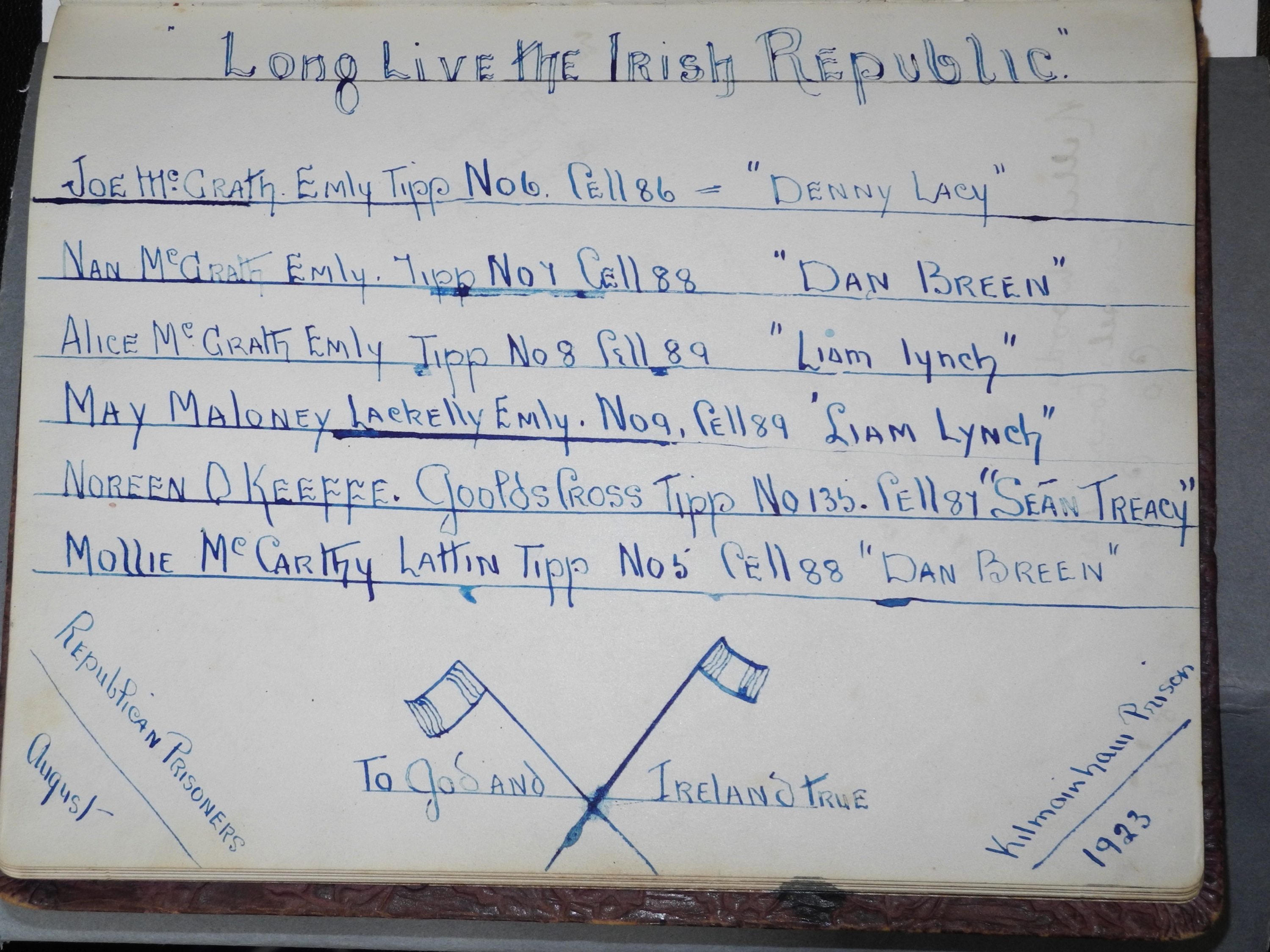 The graffiti and autograph books reveal that origins – be they as a nation or a locality – were incredibly important to the women held in the West Wing of Kilmainham Gaol and continued to be emphasized whilst they were imprisoned.