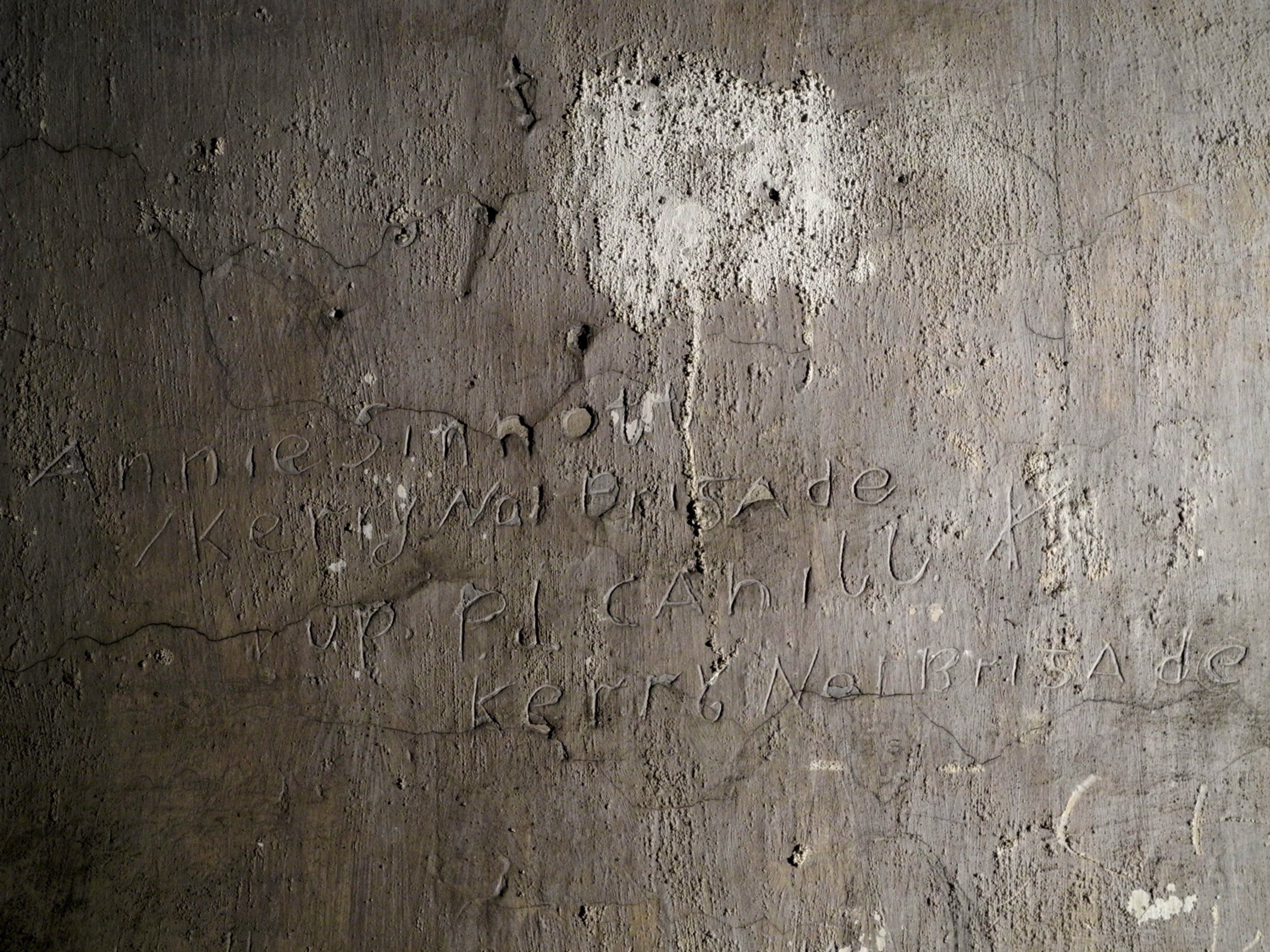 Including this example of engraved graffiti under whitewash created by Annie Sinnott, which twice referenced the ‘Kerry No 1 Brigade’ located in a cell on Corridor 3 of the middle floor.