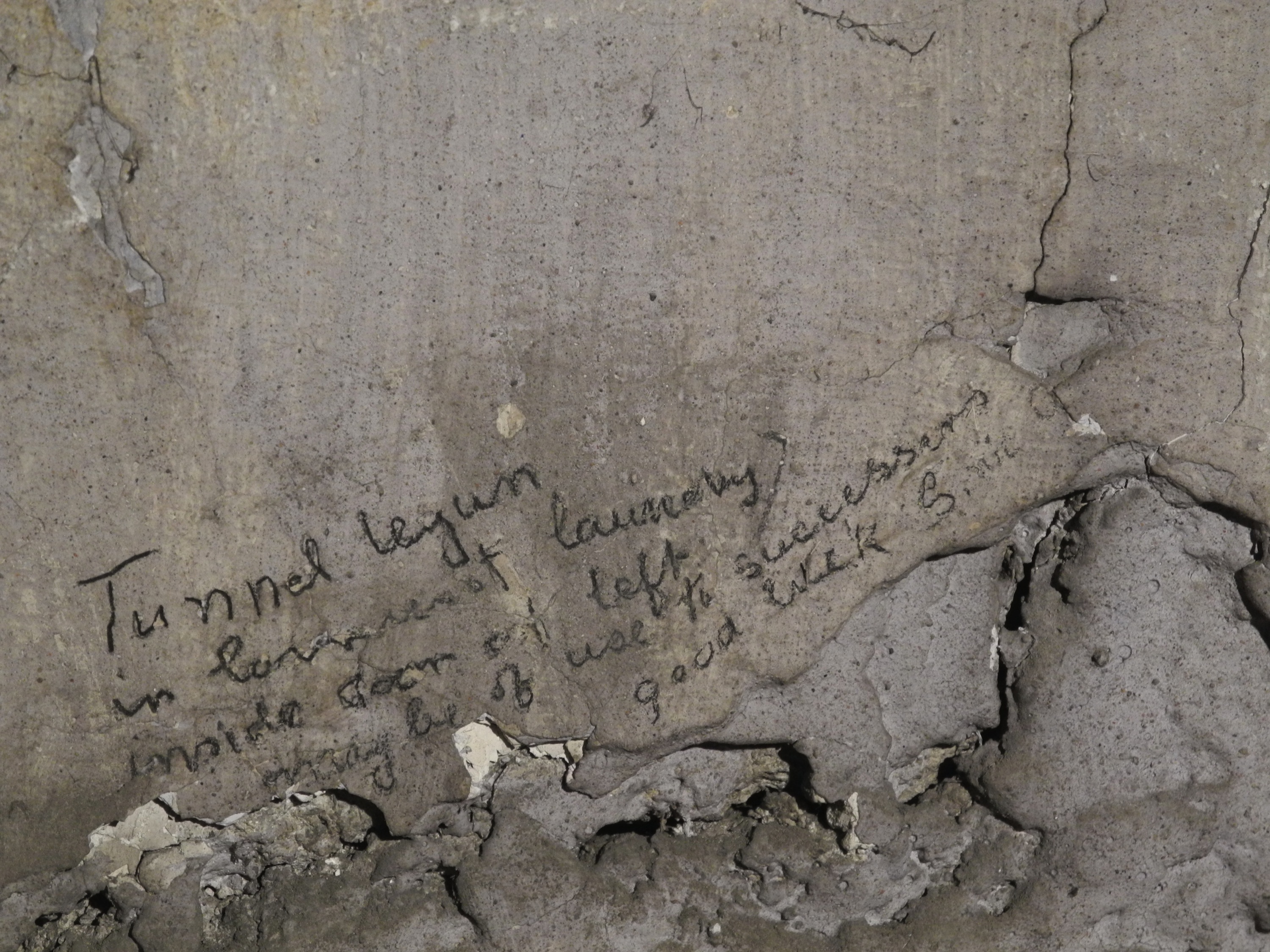 There were also two references to the tunnel located in surviving graffiti. One leaves only the faintest hint in pencil ‘Tunnel in Laundry 28/7/23’
